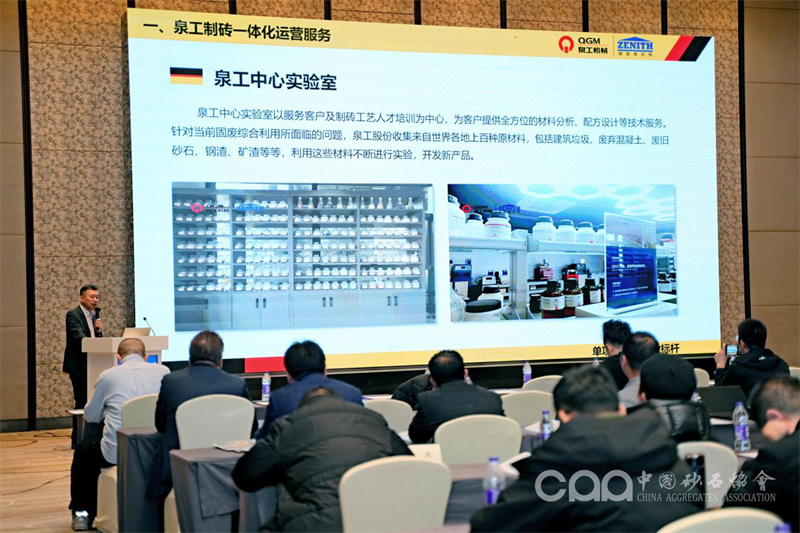 會(huì)上,泉工股份副總經(jīng)理傅國華受邀作題為《混凝土砌塊裝備技術(shù)解決方案的研究與應(yīng)用》的報(bào)告,報(bào)告中表示泉工股份致力于成為全球制磚一體化解決方案運(yùn)營商,將綠色智能化裝備做優(yōu)做強(qiáng),積極打造科技含量高、經(jīng)濟(jì)附加值高的綠色智能裝備產(chǎn)業(yè)鏈。通過干法振壓成型或濕法制磚工藝,為客戶提供定制化制磚解決方案。